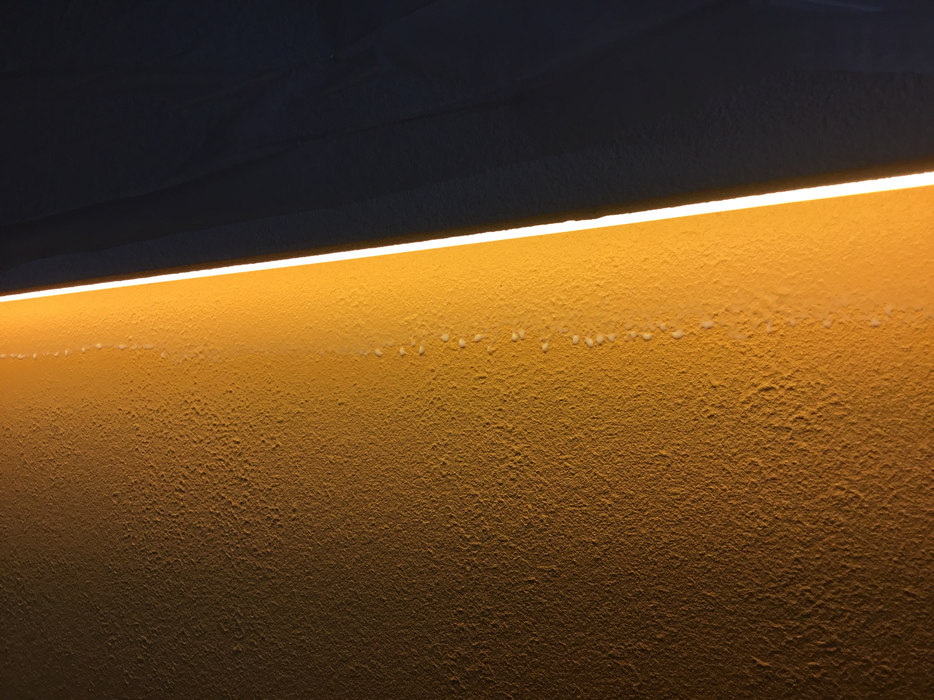 現在の塗装の上に、新しい塗装が密着するための大切な工程です。接着剤の役割を果たし、仕上がると見えない部分になります。
