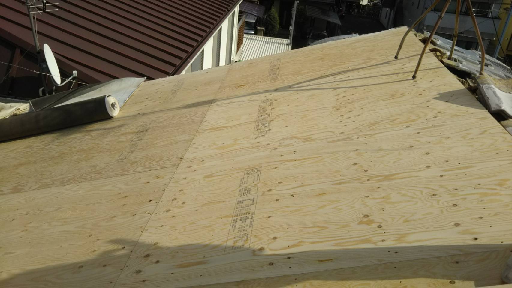 屋根の葺き替え工事をさせていただきました。 ソーラー温水器の撤去も同時にさせていだいています。 昭和56年以前の建物でしたので、京都市からの補助金【まちの匠の知恵を活かした京都型耐震】を活用し、耐震性能も上がっています。 瓦は非常に重く、耐震性能が低いので、ガルバリウム鋼板のタテヒラ葺をさせていただいております。