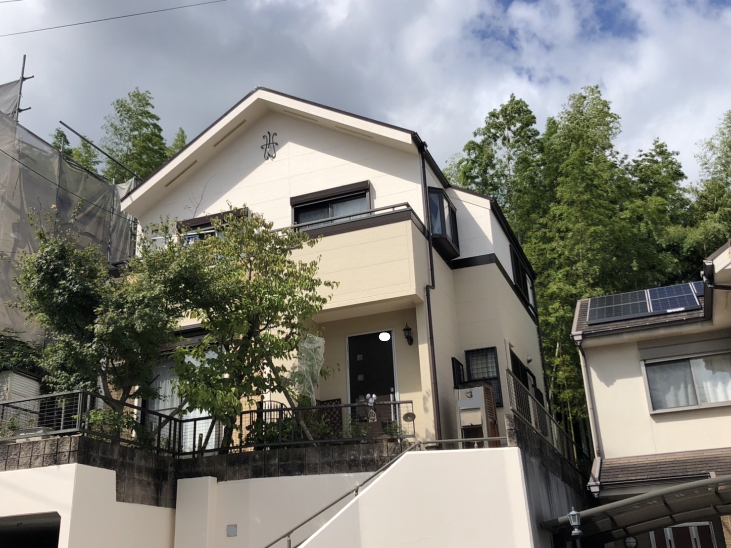 お家のイメージをガラリと変えるよりも街中の景観に合う様、落ち着いた色合いにしたいというY様の人柄が現れたような、暖かみのある色合いに仕上がりました。
